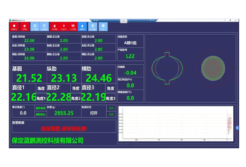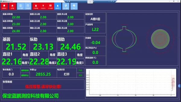 10)測(cè)量數(shù)據(jù)“超差”、測(cè)徑儀溫度“超溫”、風(fēng)機(jī)壓力過(guò)低自動(dòng)報(bào)警功能。