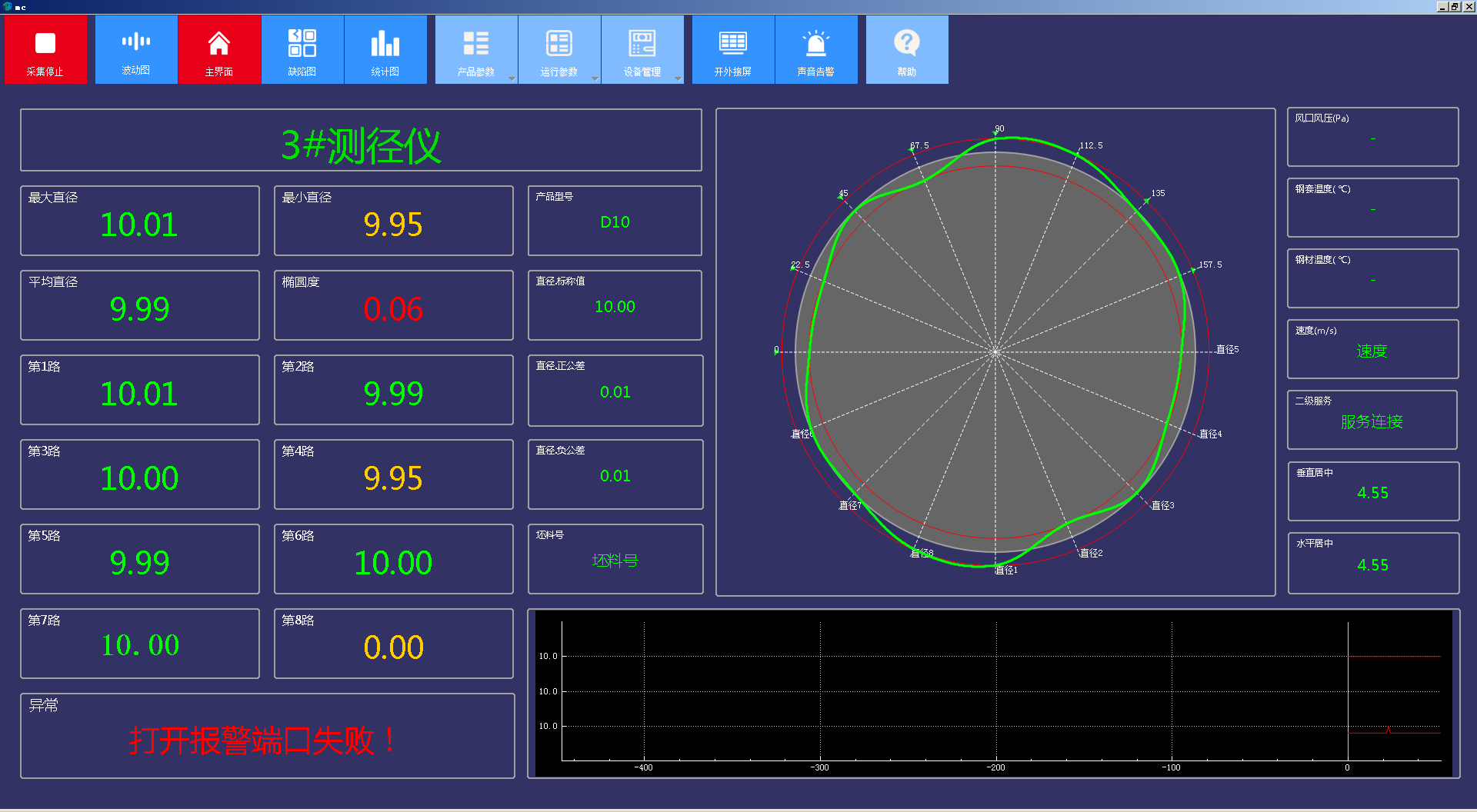 在主界面,除了以不同顏色顯示數(shù)據(jù)之外,還支持以趨勢圖、截面圖的形式來顯示待測物的實時數(shù)據(jù),從而方便用戶更直觀的了解測量數(shù)據(jù)的偏差。